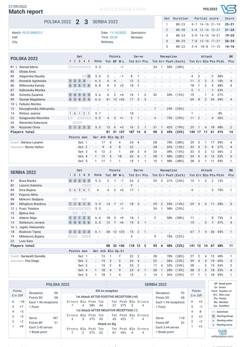 Statystyki meczu Polska – Serbia (11.10.2022)